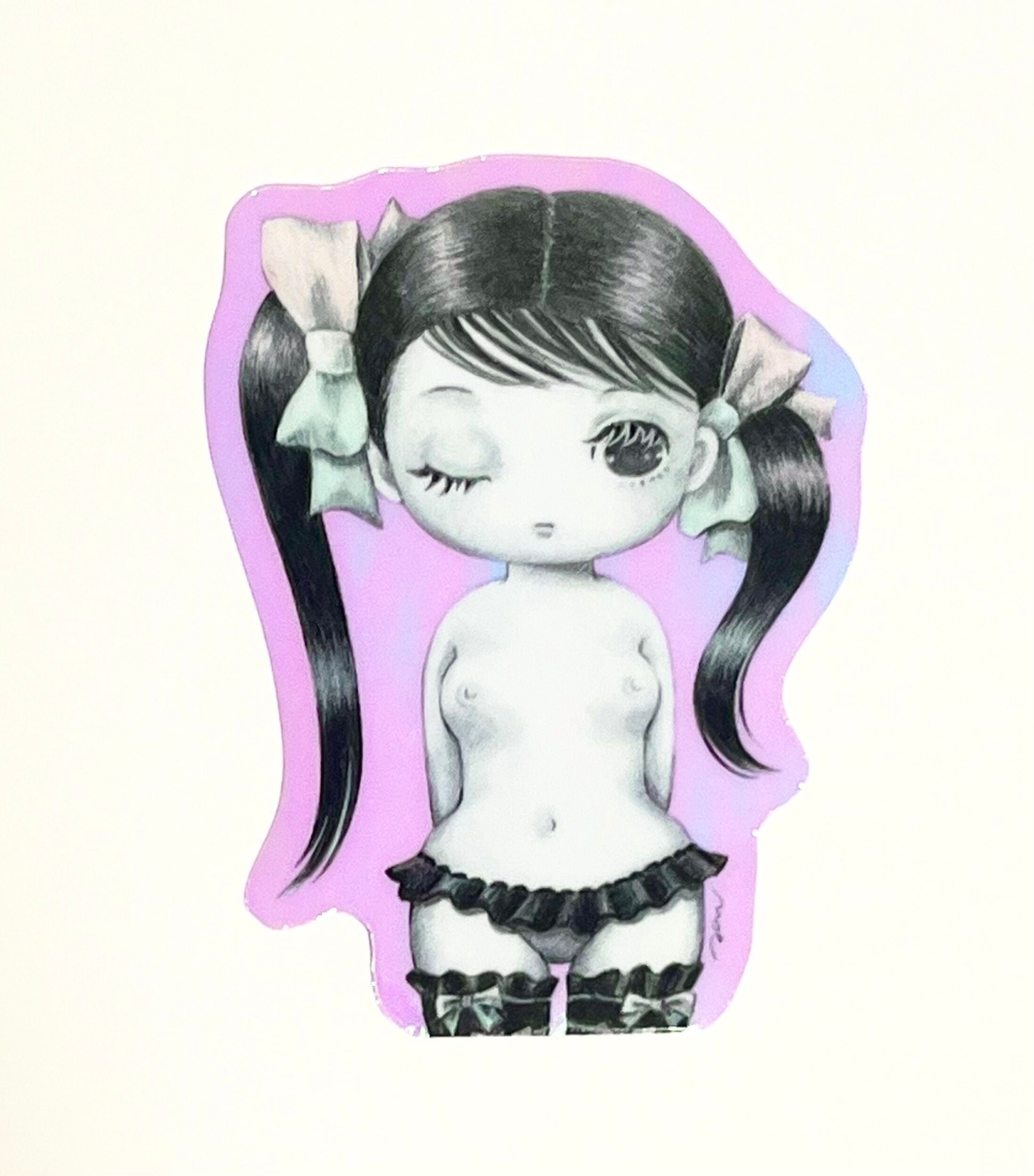 耐水性、紫外線耐候のあるオーロラピンクステッカー。